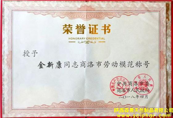 陜西森弗集團(tuán)董事長金新康榮獲“商洛市勞動(dòng)模范”榮譽(yù)稱號(hào)