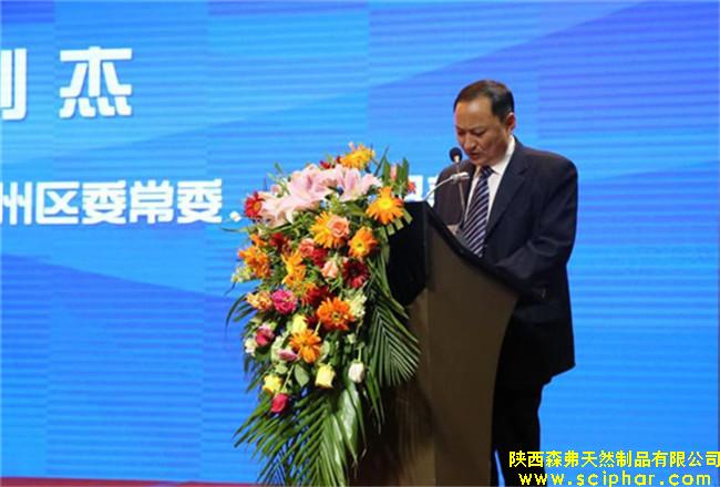 中共商州區(qū)委常委、統(tǒng)戰(zhàn)部部長鞏利杰宣讀西安市民政局關(guān)于同意西安市商州商會(huì)登記的批復(fù)文件。