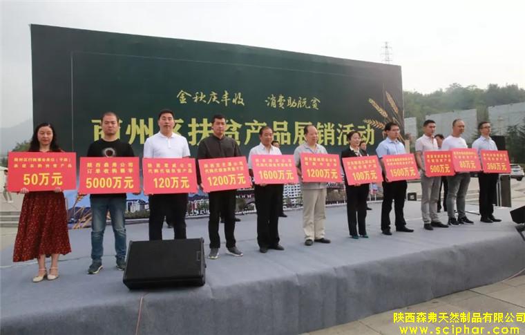 商洛市人大常委會副主任、商州區(qū)委書記張盈安,商州區(qū)委副書記、區(qū)長陳澤勇等領(lǐng)導(dǎo)查看森弗公司展區(qū),聽取工作人員介紹,詳細了解公司消費扶貧產(chǎn)品展銷活動開展情況以及產(chǎn)品的產(chǎn)量、銷量、市場前景以及扶貧帶貧效果等情況。