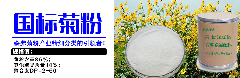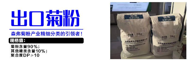 森弗菊粉做為菊粉產(chǎn)業(yè)精細(xì)分類的引領(lǐng)者,陜西森弗集團(tuán)在全球首次對菊粉進(jìn)行專業(yè)化細(xì)分為:國標(biāo)菊粉、出口菊粉、低糖菊粉、飲料果凍專用菊粉、特醫(yī)特膳專用菊粉、奶油專用菊粉、乳制品專用菊粉、烘焙專用菊粉、液態(tài)菊粉、菊芋糖漿等十大類,以滿足不同客戶的精準(zhǔn)新需求。