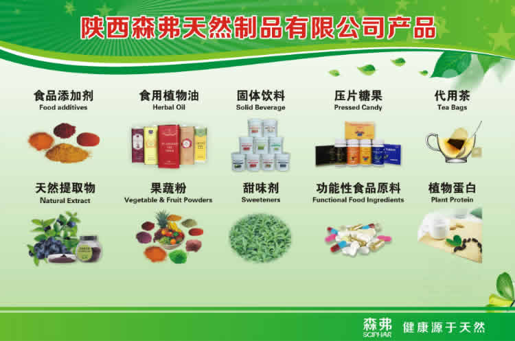 陜西森弗作為全球天然健康產(chǎn)業(yè)領(lǐng)軍企業(yè),已有9大類,500多個品種的產(chǎn)品取得藥品GMP、食品SC生產(chǎn)許可認證,通過歐盟EOS有機認證,美國NOP有機認證,HALAL、KOSHER產(chǎn)品認證,ISO9001和ISO22000質(zhì)量管理體系認證,及HACCP食品安全管理體系認證,ISO14001環(huán)境管理體系認證。取得國家應(yīng)用發(fā)明專利100多項。公司引進世界領(lǐng)先的亞臨界萃取、冷凍干燥、膜分離技術(shù)等先進生產(chǎn)工藝,在中國最美的秦嶺腳下,建立了上萬畝的種植示范園,進行規(guī)范化、標準化種植,可以為全球合作伙伴提供最專業(yè)可靠的產(chǎn)品和解決方案。