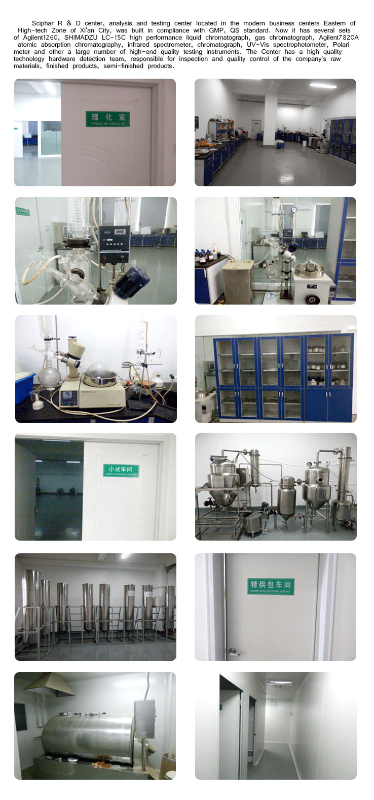 SCIPHAR?’sone of the new Extraction Production Plant in Shangluo Eco-Industry Park,equipped with advanced Super-Critical CO2and Sub-Criticalextraction facilities, processes raw materials from China and abroad in strictaccordance with GMP quality management system during the whole entireproduction process. And it owned an independently full modern laboratory usedto ensure quality products as well as to develop new processes andapplications.