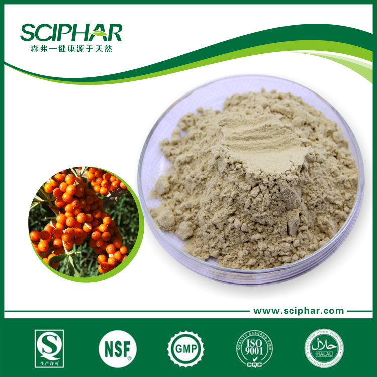 Sea buckthorn Powder is fresh squeezed juice, made by spray drying. Seabuckthorn contains all the nutrients. Sea buckthorn is rich in protein, 20 kinds of amino acids it contains, including eight kinds of essential amino acids. Its VC content is called "king of fruits", the content of vitamin E is 30 times yarn soybean oil, vitamin B1 is 2 times strawberries; others also contains vitamin B2, vitamin P, folic acid, and trace elements and leaves amides unsaturated fatty acids.
