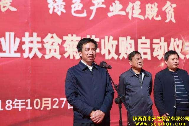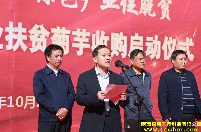 商州區(qū)委常委、常務(wù)副區(qū)長馮朝勇宣布“2018年陜西森弗產(chǎn)業(yè)扶貧菊芋收購工作”正式開始